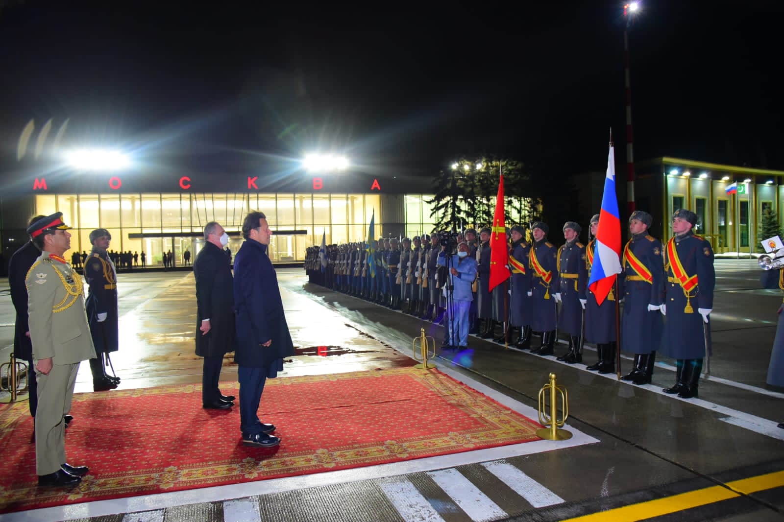মস্কো বিমানবন্দরে লাল-গালিচায় হাঁটতে হাঁটতে খান বলেন, "কী একটা সময় এসেছি, এত উত্তেজনা।" পাকিস্তানের পিএমও খানের ছবি শেয়ার করেছে যেখানে তাকে মস্কো বিমানবন্দরে লাল গালিচা সংবর্ধনা দেওয়া হয়েছিল এবং রাশিয়ার উপ-পররাষ্ট্রমন্ত্রী ইগর মরগুলভ অভ্যর্থনা জানিয়েছেন।