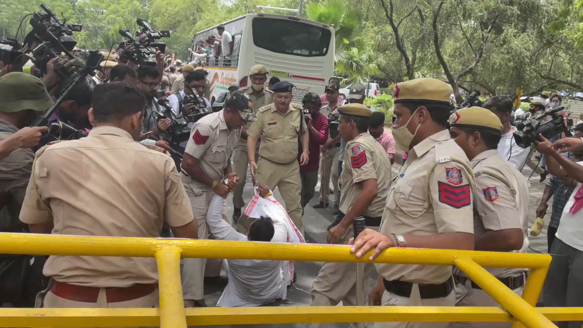 ভারতীয় যুব কংগ্রেসের প্রধানকে পুলিশ ব্যারিকেড অতিক্রম করার চেষ্টা করলে চার থেকে পাঁচজন পুলিশ সদস্য তাকে তুলে নেওয়ার চেষ্টা করে কিন্তু তিনি তাকে আটক করার প্রচেষ্টাকে আক্রমণাত্মকভাবে প্রতিহত করেন; দলের এক নারী কর্মীকেও তাকে পুলিশের কাছ থেকে টেনে নিয়ে যাওয়ার চেষ্টা করতে দেখা যায়। পুলিশ তাকে পুলিশ বাসে ধাক্কা দিলে দলীয় নেতাকর্মীরা তাকে পেছনে ধাক্কা দিতে দেখা যায়।