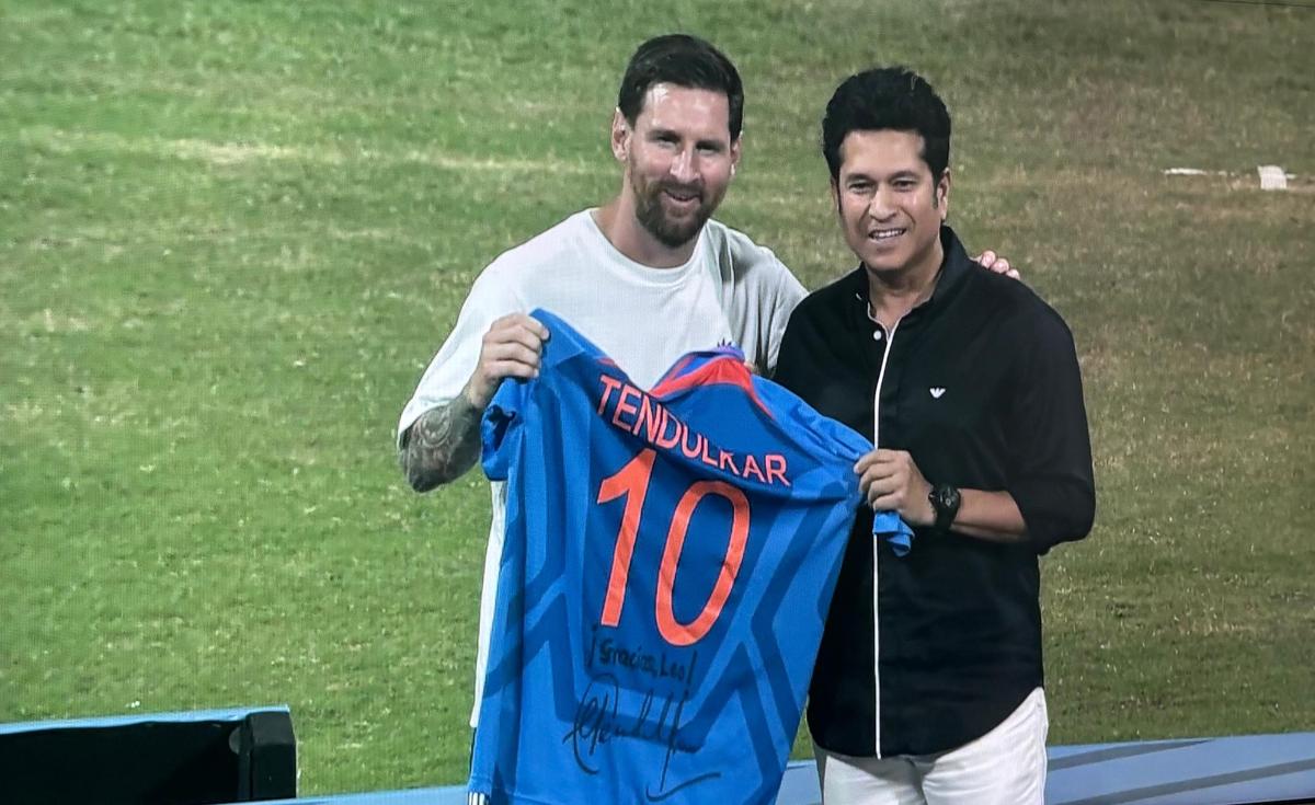 ওয়াংখেড়ে স্টেডিয়াম রবিবার একটি ঐতিহাসিক মুহূর্তের সাক্ষী ছিল যখন ক্রীড়া কিংবদন্তি লিওনেল মেসি এবং শচীন টেন্ডুলকার হাজার হাজার উন্মত্ত ভক্তদের সামনে একটি দুর্দান্ত অনুষ্ঠানের সময় স্পটলাইট শেয়ার করেছিলেন।